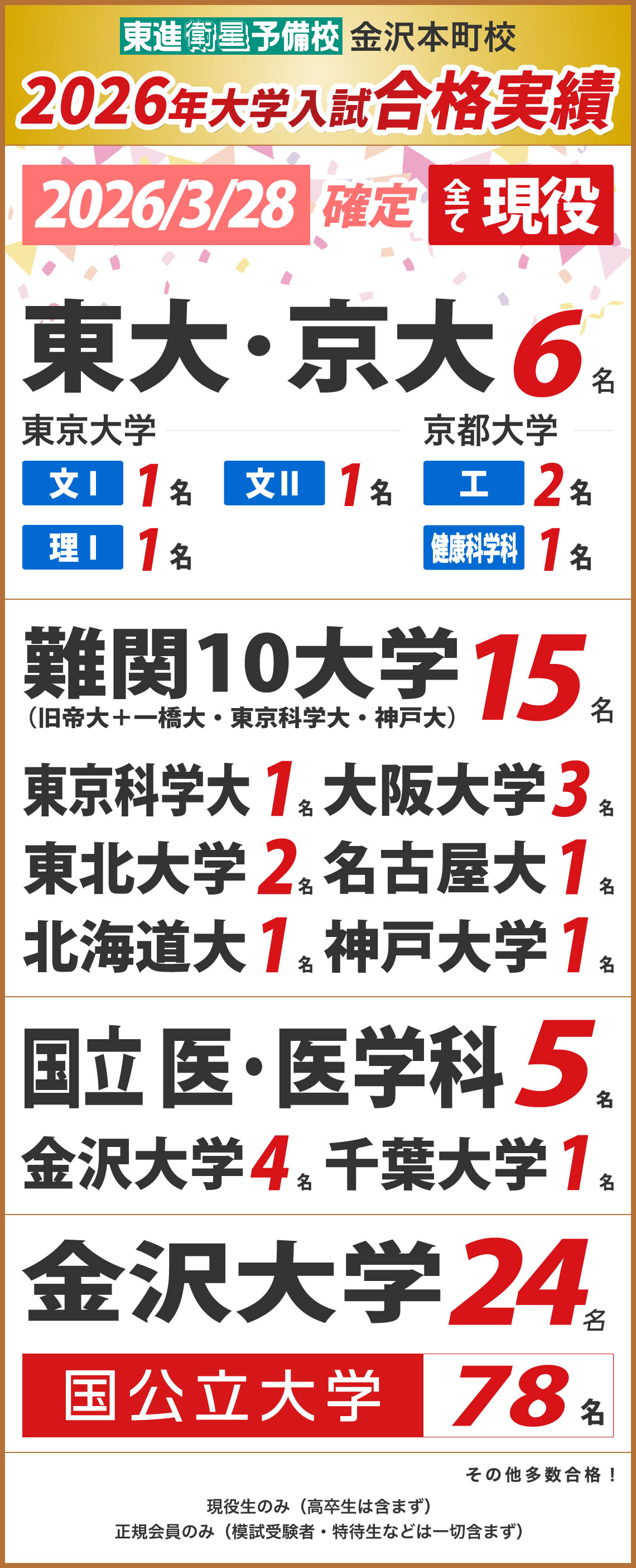 - ・合格実績の確定は3月31日を締め切りとする。4月1日以降に判明した合格者は計上しない。